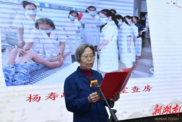 首發式上,孫材江、袁長津高度評價了楊壽峨教授在中醫藥事業上的高尚醫德和卓越貢獻,贊揚了湘潭市中醫醫院在傳承中醫事業上的薪火相傳、守正創新。市衛健委相關負責人向楊壽峨頒發了“從醫62周年”紀念章。