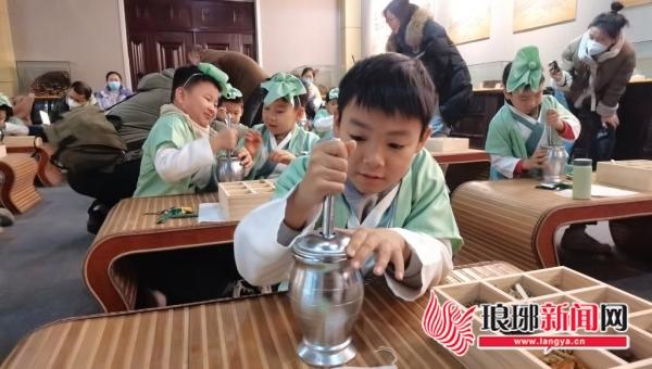 11月25日,在沂蒙民間中醫藥文化館,一個個萌娃穿上漢服后化身“小藥師”,在中醫專家的帶領下,認識中草藥,見識古代制藥工具,動手制作香囊,沉浸式體驗中醫藥國粹魅力!