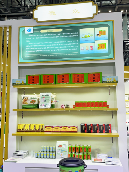 德眾藥業作為“中華老字號”企業,在大會上盡展百年老字號的魅力,弘揚中藥文化。其中,德眾藥業作為生產保護單位的知名涼茶類中成藥,“源吉林甘和茶”,更是成為了會場的一大亮點。源吉林甘和茶由35味中藥材配伍而成,在疏風清熱、解暑消食、生津止渴方面效果明顯,是嶺南地區家家戶戶的常備藥茶,并在2012年入選廣東省非物質文化遺產。其中19味藥材具有不同成分的祛濕功效,可用于調理改善濕熱體質,亦藥亦茶,功效溫和。