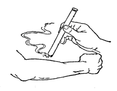 施灸時,艾條點燃的一端與穴位局部的距離不固定,如鳥雀啄食一樣上下活動,每處灸10-15分鐘,至皮膚紅暈為度。