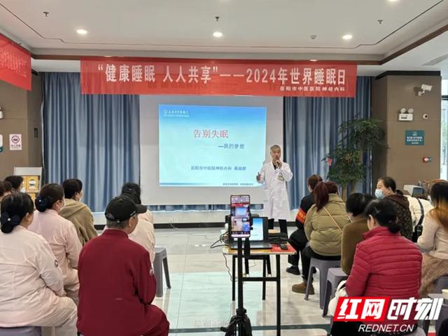 3月21日世界睡眠日。岳陽市中醫醫院組織神經內科、康復科等多個學科在門診樓大廳開展以“健康睡眠,人人共享”為主題的系列健康公益行動?;顒佑兴咧R講座、健康義診和中醫特色療法體驗,采取“線上+線下”形式展開,共計有上萬名市民、網友參與互動。