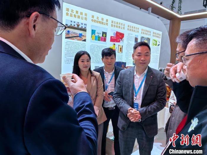 與會嘉賓參觀世界大健康博覽會咸寧館 現場品嘗“黃精”茶