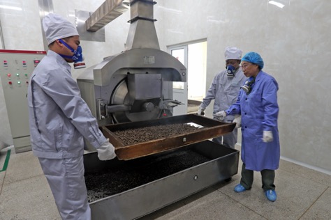 第五代傳承人任紹學(中)指導工人篩選馬錢子