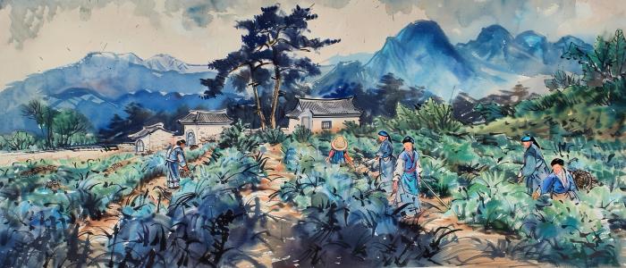 據介紹,通過12張生動形象、細致入微的建青黛勞動場景圖,可直觀地了解傳統建青黛產業從種植、收割、加工、印染的勞動過程,為仙游青靛提煉技藝的保護和傳承工作做出了創新性示范。