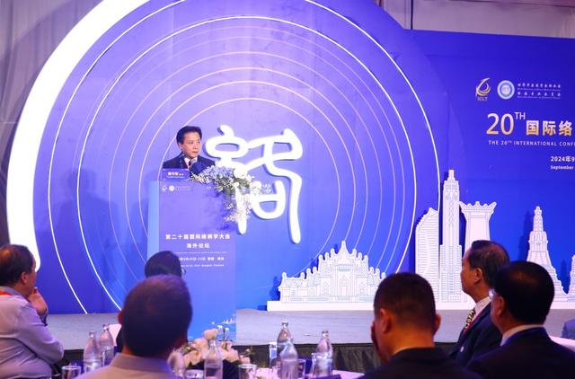 9月21日,在泰國曼谷,世界中醫藥學會聯合會副會長、泰國中醫師總會會長林丹乾在第二十屆國際絡病學大會海外論壇上發言。新華社記者孫瑋彤攝