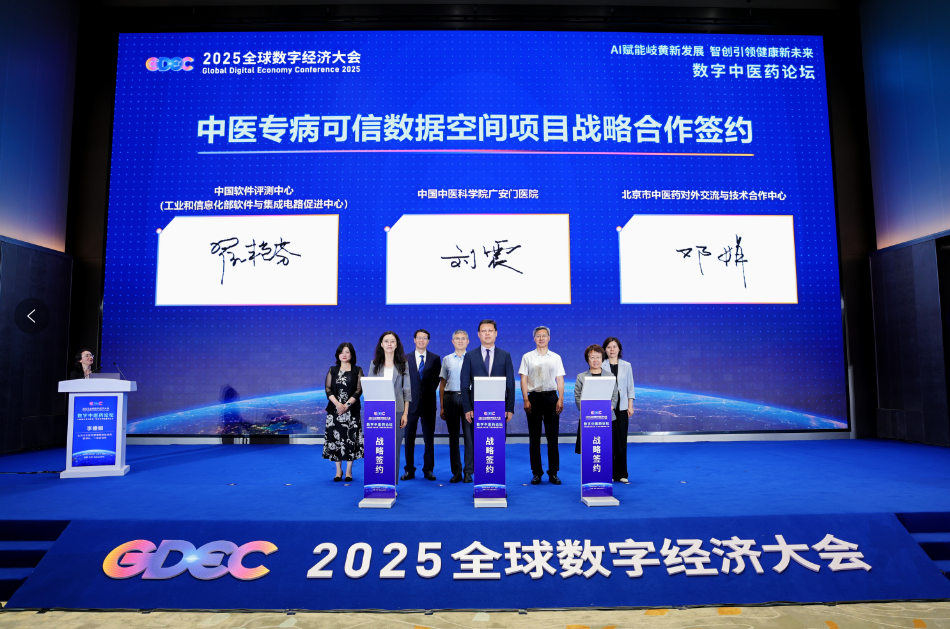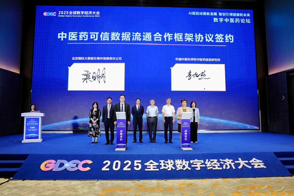 數據作為關鍵生產要素,正重塑中醫藥行業格局。加速釋放數據紅利是構建新發展格局的必然要求。響應國家數據局《可信數據空間發展行動計劃(2024-2028年)》,論壇兩項可信數據戰略簽約備受矚目:中國中醫科學院廣安門醫院、中國軟件評測中心、北京市中醫藥對外交流與技術合作中心簽署“中醫專病可信數據空間項目戰略合作框架協議”,依托隱私計算、區塊鏈等技術,構建全流程數據管理體系,推動中醫專病數據跨主體可信共享;中國中醫科學院中醫藥信息研究所與北京國際大數據交易所簽署“中醫藥可信數據流通合作框架協議”,聚焦數據確權、高質量數據集開發與產品流通,共建安全可信的中醫藥數據流通生態。兩項合作協議的成功簽署,進一步為數據流通循環提供了可落地的實踐樣本。