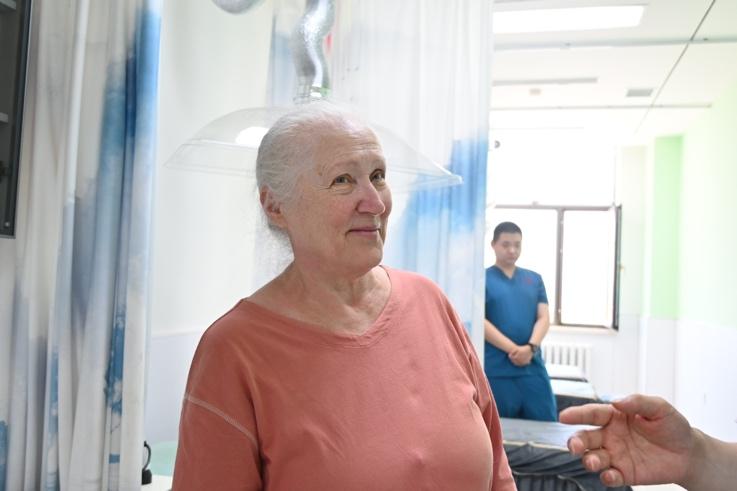 走進黑河市中醫醫院,一股濃烈的艾草香撲面而來,74歲的瓦倫蒂娜·尼古拉耶夫娜·伊萬諾娃正坐在椅子上閉目接受按摩治療,時不時因為按中肩頸穴位而微微皺眉。