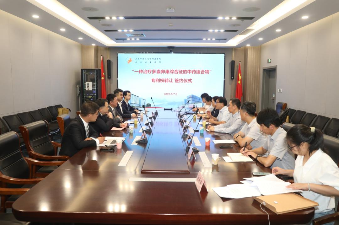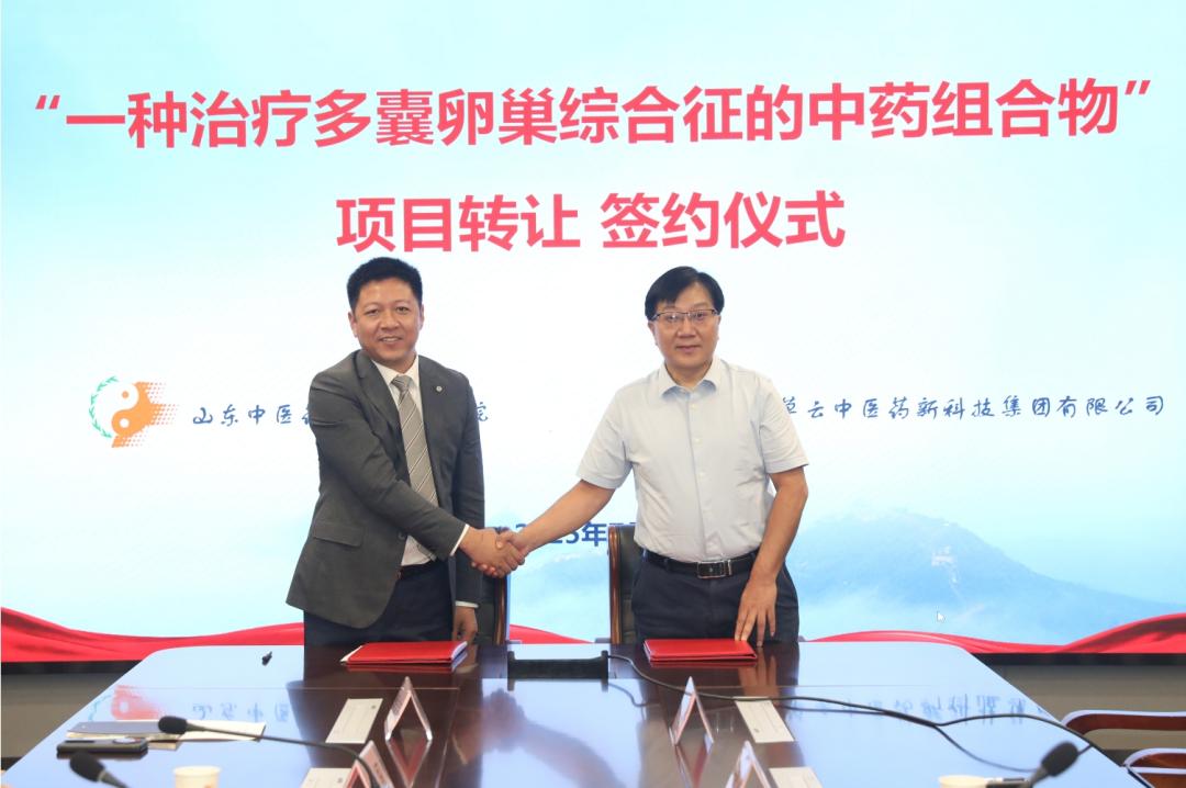 7月30日,山東中醫藥大學附屬醫院(山東省中醫院)與廣東橫琴知草云投資有限公司舉行專利權轉讓簽約儀式。本次轉讓的專利“一種治療多囊卵巢綜合征的中藥組合物”由孫振高教授團隊研發。山東省中醫院院長鄧華亮、知草云中醫藥新科技集團有限公司總經理吳磊出席儀式并代表雙方簽訂技術轉讓合同。
